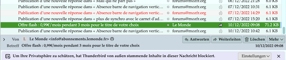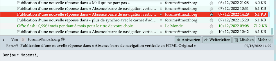 ich möchte von Apple Mail auf Thunderbird umsteigen und würde gern auch in Thunderbird die Möglichkeit nutzen, Mails farbig zu markieren / hervorzuheben. Das ist für mich bei einer Vielzahl von Mails eine sehr gute Möglichkeit in den Ordnern die Übersicht zu behalten.