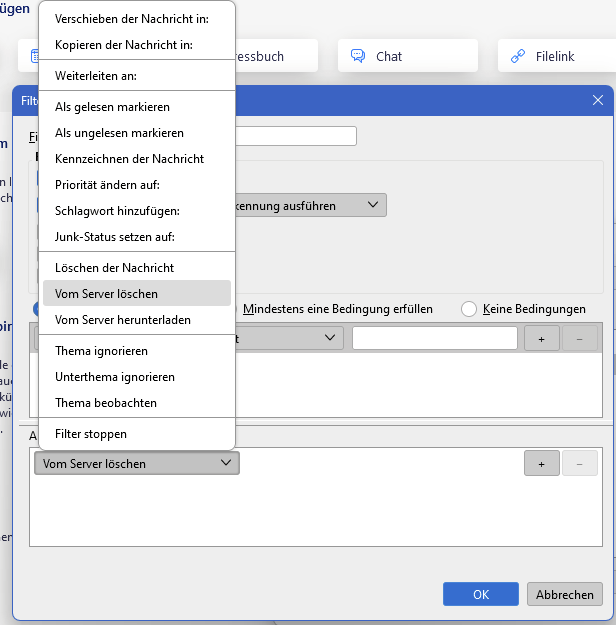ergänzend zu Drachen gibt es beim Filtern verschiedene Aktionen, u.a. Vom Server löschen: