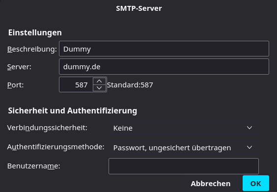 Es bringt nichts, im Thunderbird einen neuen Server (natürlich mit derselben Adresse) einzurichten. Die Verbindung geht zum selben SMTP-Server wie zuvor, und Senden funktioniert wieder nicht.