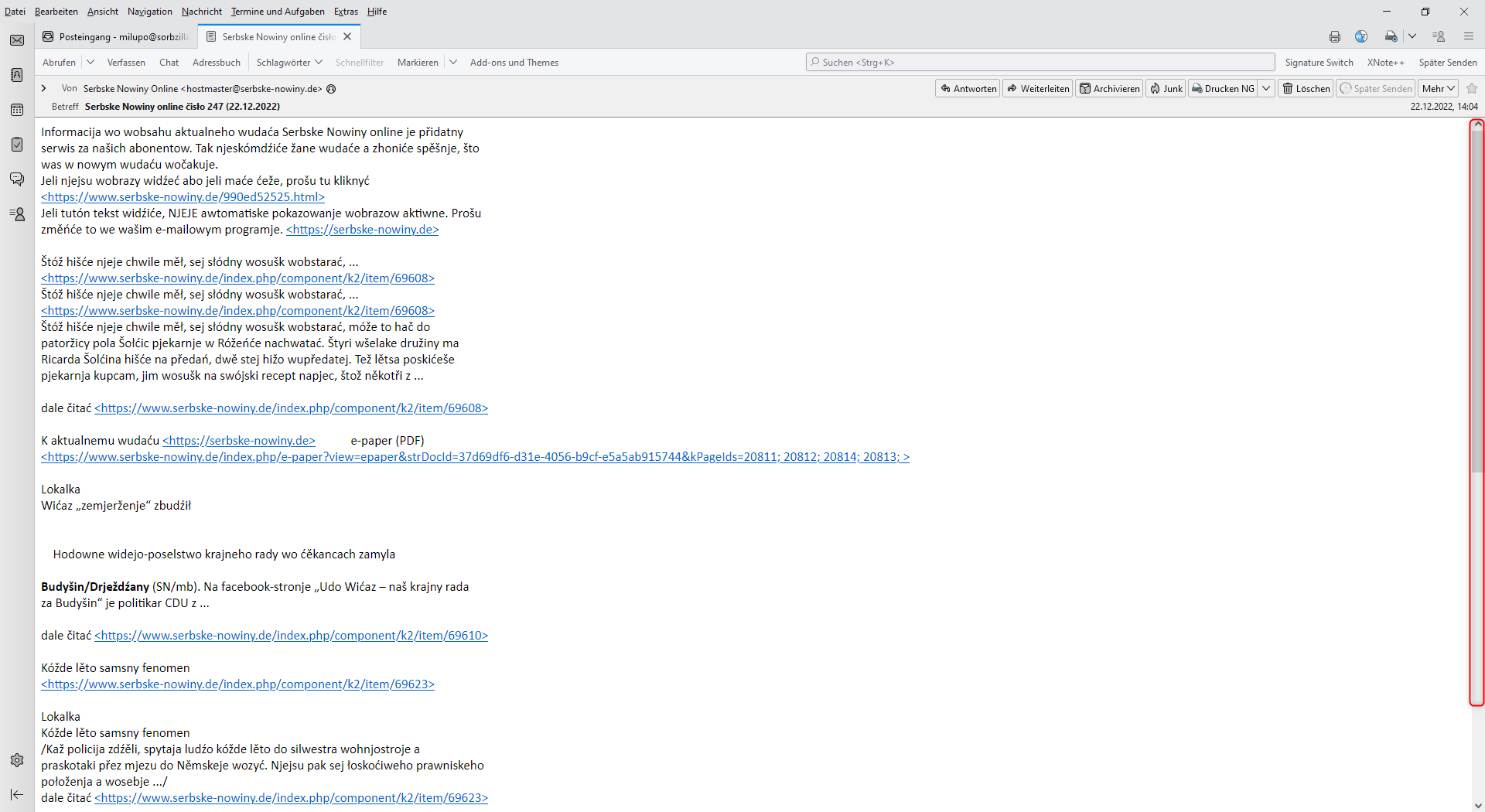 Beim aktuellen thinderbird verschwindet in den email die rechte scrollbar automatisch und taucht erst auf, wenn man dort hinpointed Zudem ist sie sehr klein und schmal! Das ist sehr schlecht, weil man so die Leiste nur sehr schlecht trifft. Oft erwischt man so die Funktion der Fenstervergrößerung.