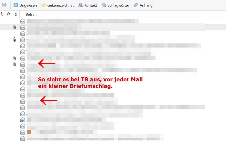 Bei TB wird ja im Posteingang jede Mail in der Liste vorne durch einen kleinen Briefumschlag gekennzeichnet.