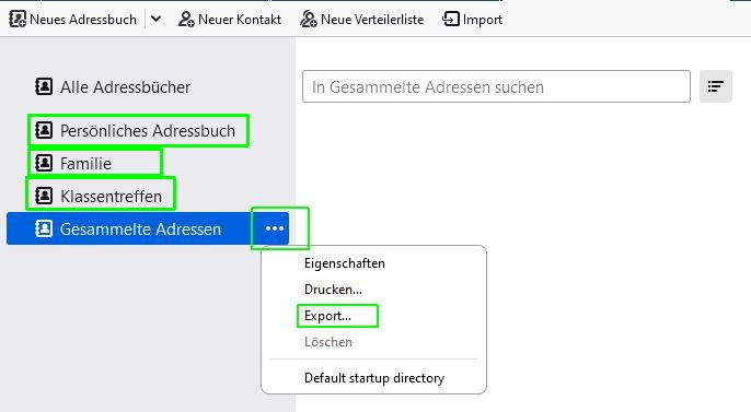 Wie kann ich NUR das Adressbuch nochmals exportieren?