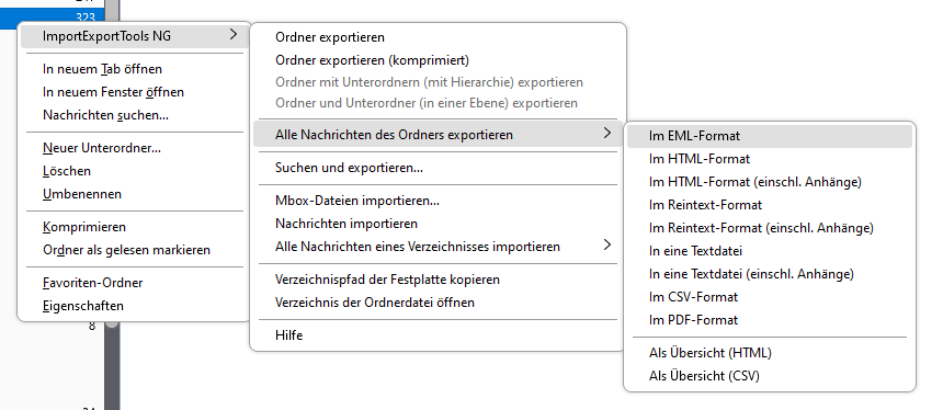 - ImportExportTools NG / Alle Nachrichten des Ordners exportieren / Im EML-Format