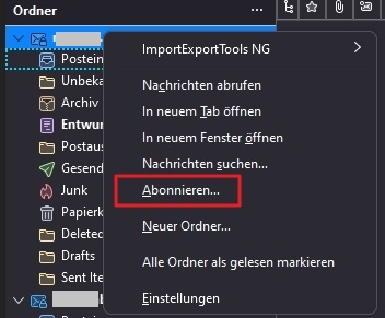 TB erneut starten und wieder Kontenordner -> Abonnieren gucken.