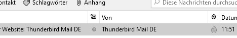 Im Fenster mit allen Mails eines Ordners ist in der Spalte "Von" dagegen eine Angabe zu sehen: