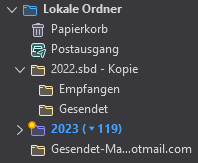 Auf dem GoogleDrive Ordner, in dem sich auch der von 2023 befindet, ist aber noch alles enthalten, d.h. pro Jahr gibt es eine *.msf Datein und einen dazugehörigen Ordner *.sbd mit den empfangen.msf und gesendet.msf sowie den entsprechenden Dateien, die auch mehrere mb groß sind.