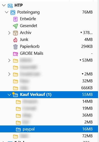• Meine Mailbox Ordner Hierarchy ist HTP / Posteingang / KaufVerkauf / PayPal