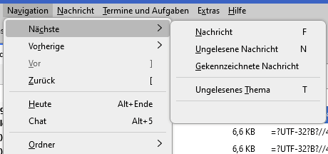 Also ich bin im ordner archiv, öffne eine der nachrichten, und dann möchte ich mich weiter durch die (geöffneten) nachrichten klicken, auf- oder absteigend. Ich glaube, bei OE früher ging das. Doch bei TB sehe ich auch nach längerem suchen nichts derartiges.