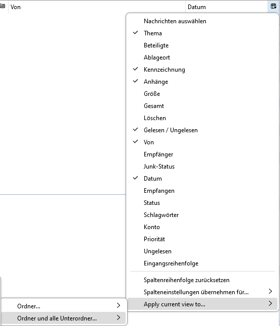 Einen Menupunkt "apply current view..." habe ich nirgends, auch nicht auf deutsch.