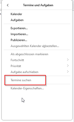Einstellungen - Termine und Aufgaben - Termine suchen.