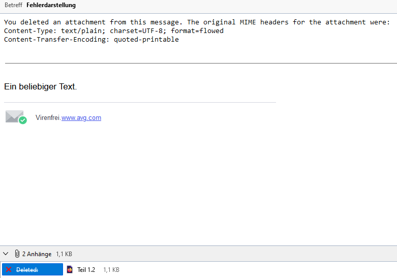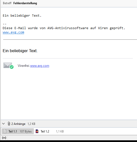 Leider zeigt Thunderbird jedoch noch immer alle Teile aller Mails in ihren attachments an.