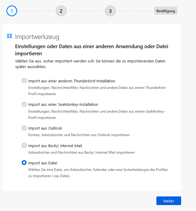 Ich habe Thunderbird gestern eingerichtet und meine Mails von T-Online Software 7