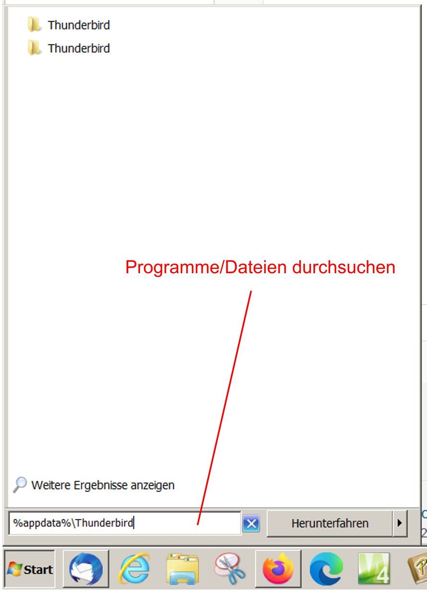 Wenn ich bei meinem Win 7 die Win-Taste + R drücke und %appdata%\Thunderbird reinschreibe, kommt das auf dem Screenshot zu sehende.