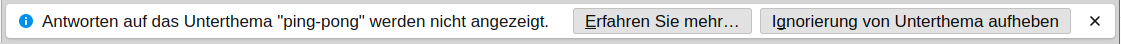 eben stand unten in der Benachrichtigungszeile "Antworten zu Thema XYZ werden nicht mehr angezeigt", vermutlich habe ich das versehentlich per Tastendruck aktiviert. Kann ich das rückgängig machen, und auch sehen was da gesperrt ist? Per Suche (Schnellfilter, STRG-Shift-K) finde ich leider nix