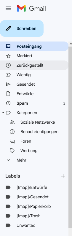 Ein Screenshot habe ich angehängt, so sieht mein Gmail Konto aus, es sind noch 2 Spam E-Mails im Spam-Ordner.