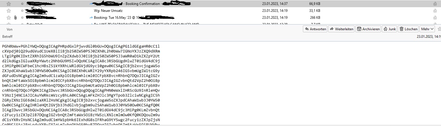 Alles anzeigenEinzelne mails verlieren ihre Formatierung und dann nicht mehr lesbar bzw sind nur noch Sonderzeichen lesbar