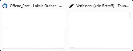 Danke erstmal für die Antworten. Ich bin aber der Meinung das es unter Windows 10 anders war. Kann es sein das es unter Windows 10 zwei nebeneinander stehende Einträge in der Taskleiste gab: Thunderbird alleine und Verfassen neue Mail rechts daneben, während jetzt dort nur ein Eintrag ist und wenn man darauf klickt muss man noch zwischen den dann erscheinenden zwei Minifenstern (siehe Bild in #1) auswählen?