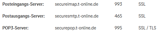 Folgend aktuelle Zugangsdaten t-online, zum Abgleich mit Konten-Einstellungen -> Server-Einstellungen