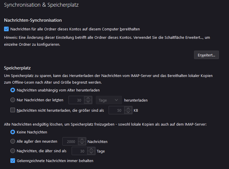 Zu quasi beiden Punkten, musste bei Senden/ Abholen von Mails, Thunderbird die Synchronisieren, dass die Offline nutzbar sind.