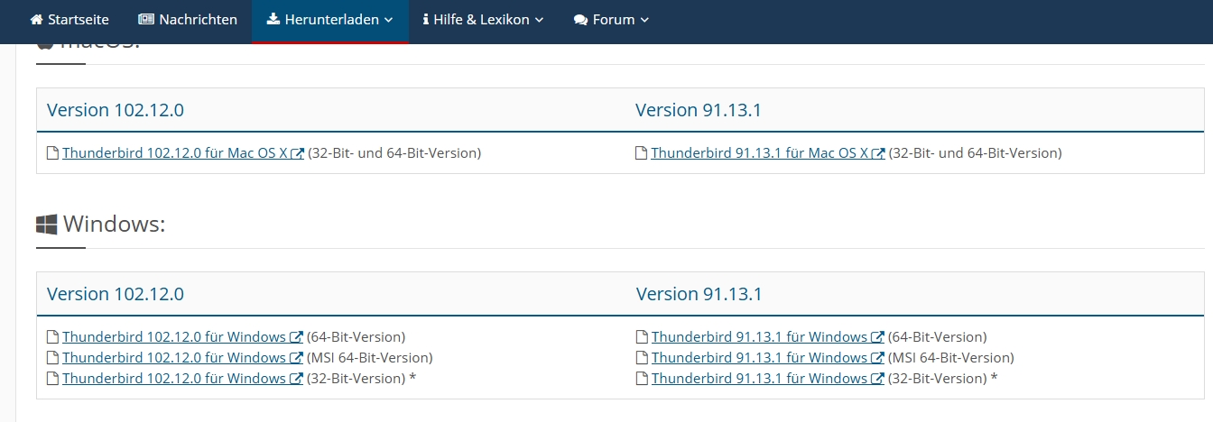 Und wenn du auf regelmäßige Sicherheits-Updates nicht erpicht bist, solltest du vielleicht auf andere Mailclients setzen, denn hier gibt es nur die neusten Versionen zum download.