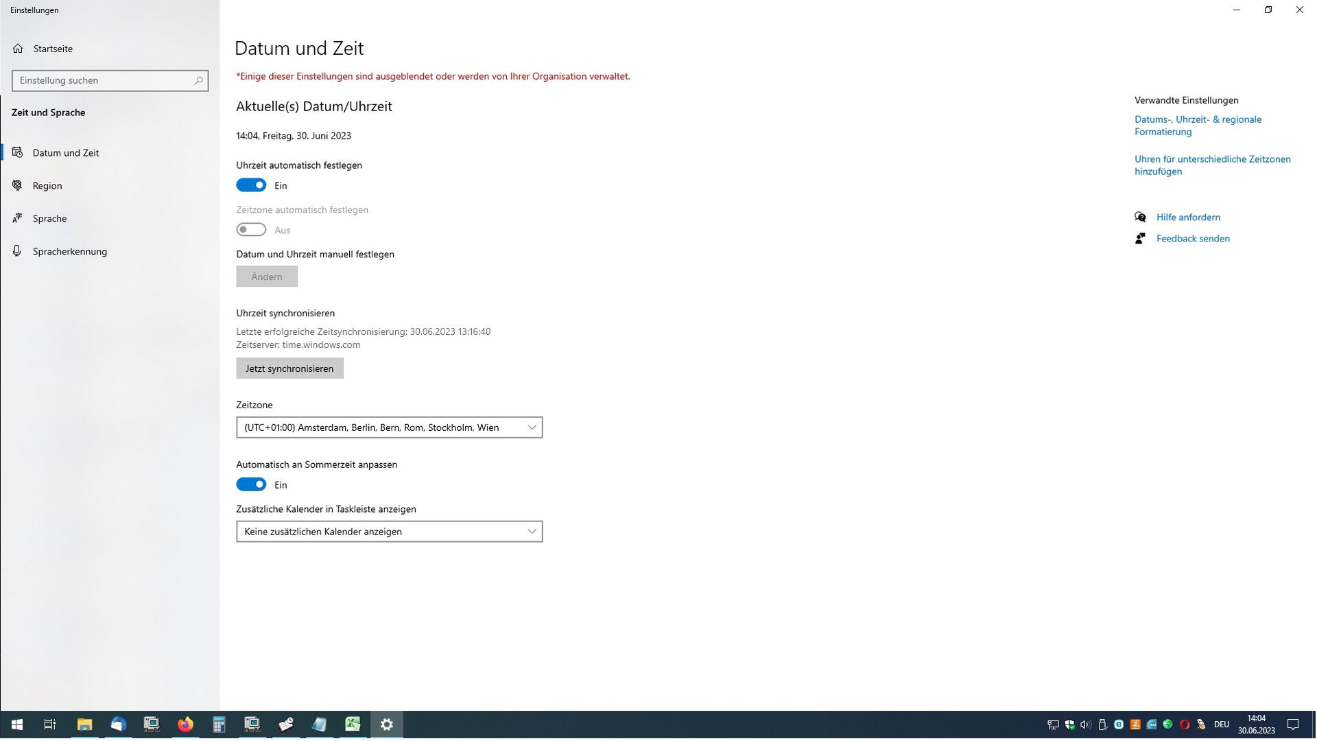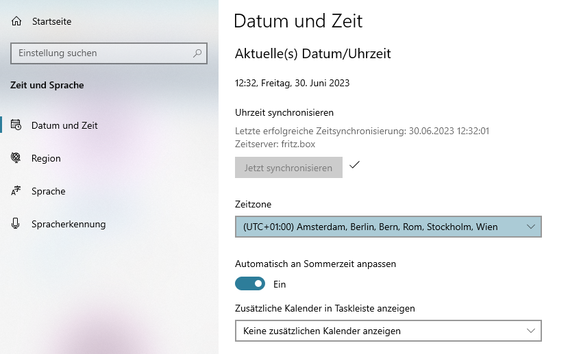 Bei den Einstellungen unter Windows ist eingestellt "Uhrzeit automatisch festlegen";