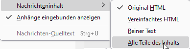 Nun hat in beiden Programmen, TB und BB, jede (!) Mail 2 Anhänge bekommen (Teil1.1 und html Teil 1.2). Abgesehen von anderen Anhängen, die mich ja viel mehr interessieren