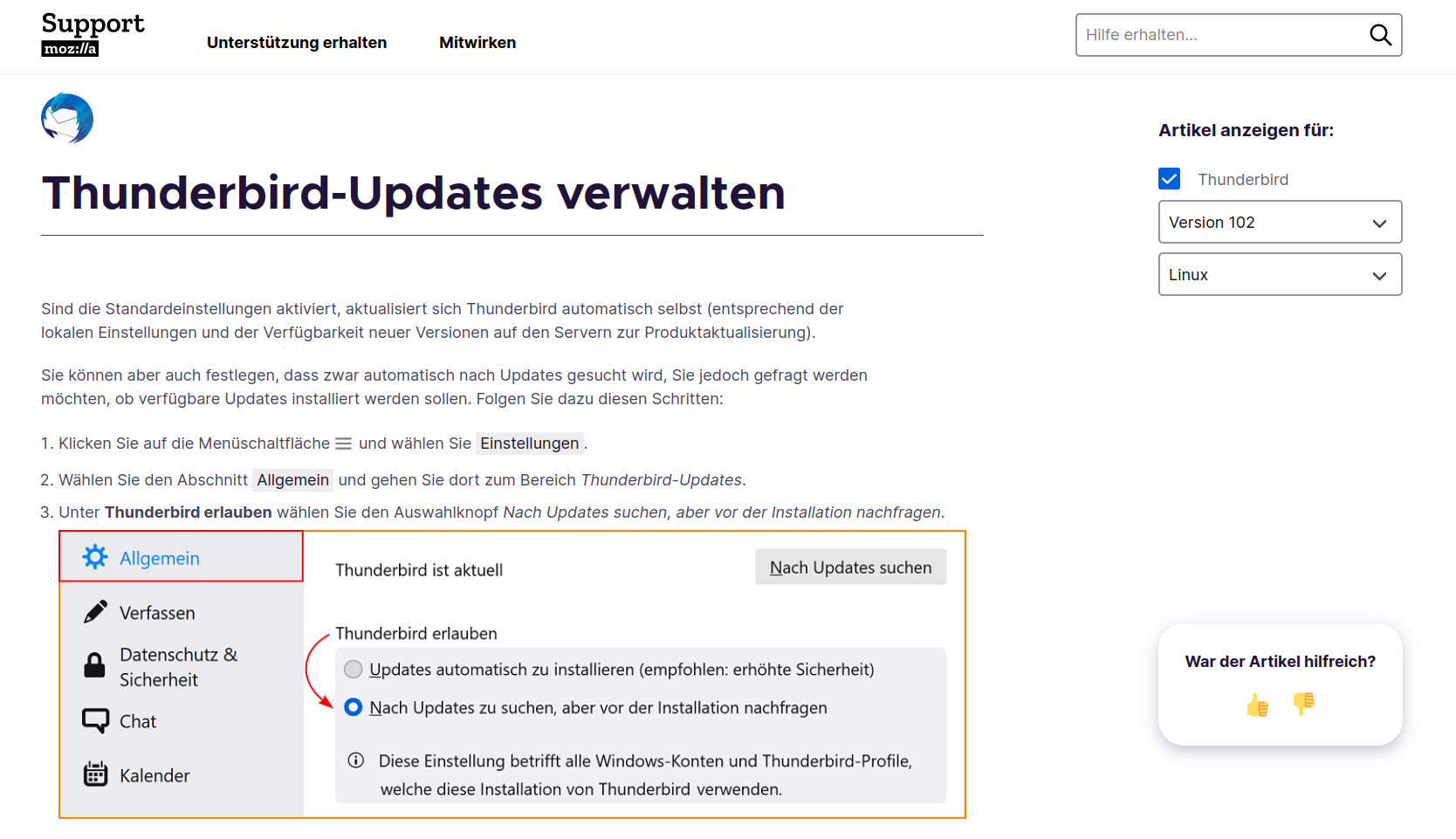 Thunderbird-Updates verwalten | Hilfe zu Thunderbird