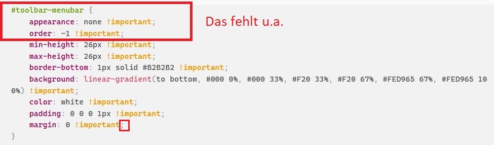 Gibt es einen Grund warum die Menüleiste nicht automatisch ganz oben ist?