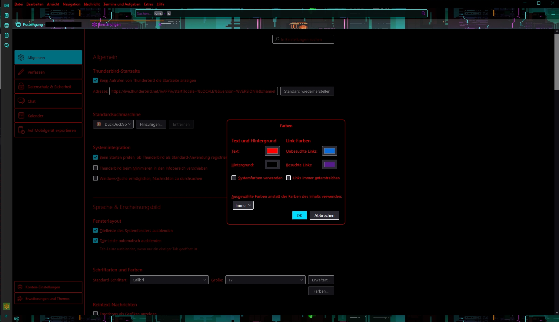 Thunderbird öffnen und Klick auf --> Extras - Einstellungen - Erweitert
