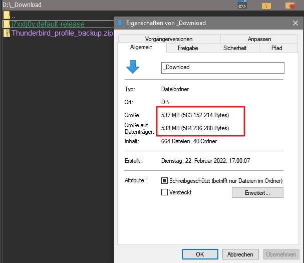 ... es gibt kein internes Backup seitens Thunderbird. Wenn du das AddOn ImportExportTools NG meinst, dann muss es auch entsprechend konfiguriert werden, denn dieses AddOn kann nämlich den ganzen Profilordner mit allem, was dazugehört sichern.