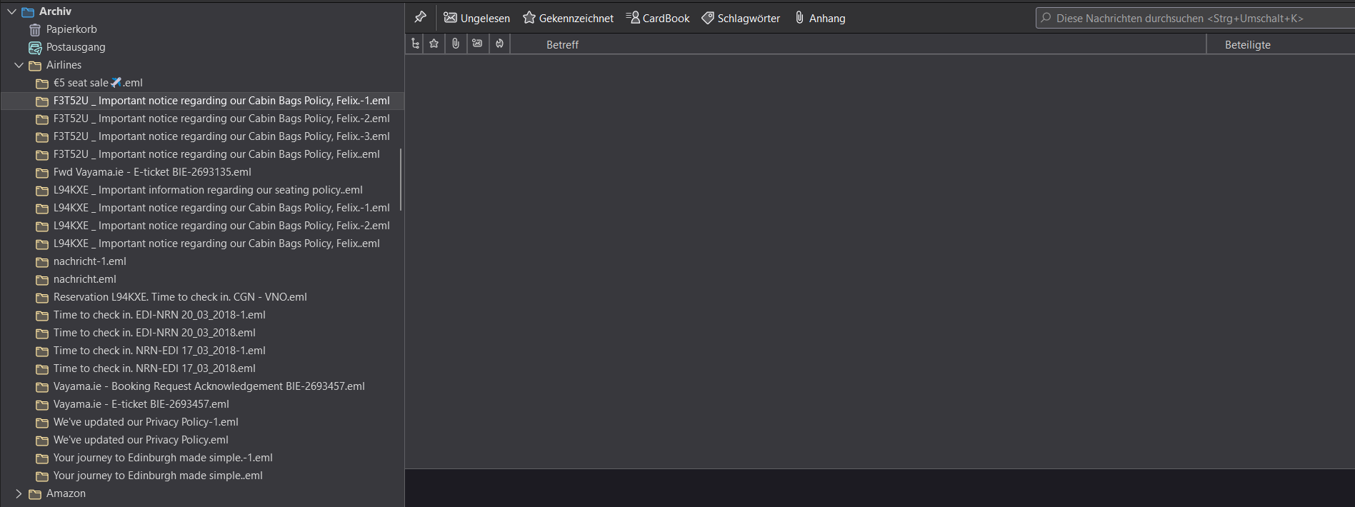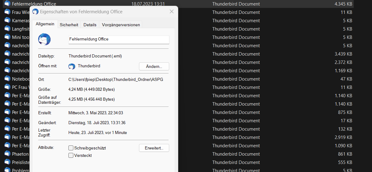 dort etliche .eml markiert und gemeinsam zum TB in die Mailliste von Sammel gezogen -> fertig