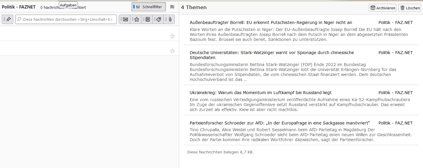 Mit "Metadaten" meine ich die Informationen, die mir im Vorschaufenster zu einer Nachricht angezeigt werden. Allerdings fehlen eventuell vorhandene Bilder.