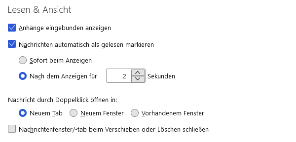 Naja, macht es denn Sinn, die Option abzuschalten, nach der eine E-Mail nach eine paar Sekunden als gelesen angesehen wird?