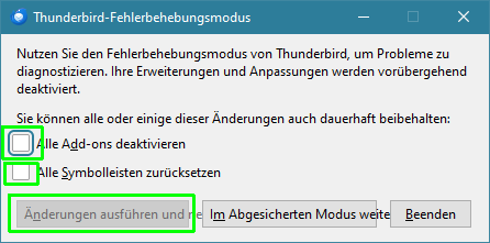 • Thunderbird friert ein beim Start, abgesichert auch, was tun?
