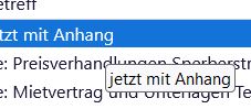Wenn ich über eine Nachricht mit der Maus fahre, erscheint ein kleines Popup-Fenster mit den Inhalt vom Betreff.