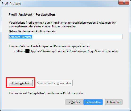 Oder hast du im / aus dem Ordner %Appdata%\Thunderbird\Profiles\ den eigentlichen Profilordner mit dem kryptischen Namen kopiert? Dem weiteren Text nach vermutlich Letzteres ....