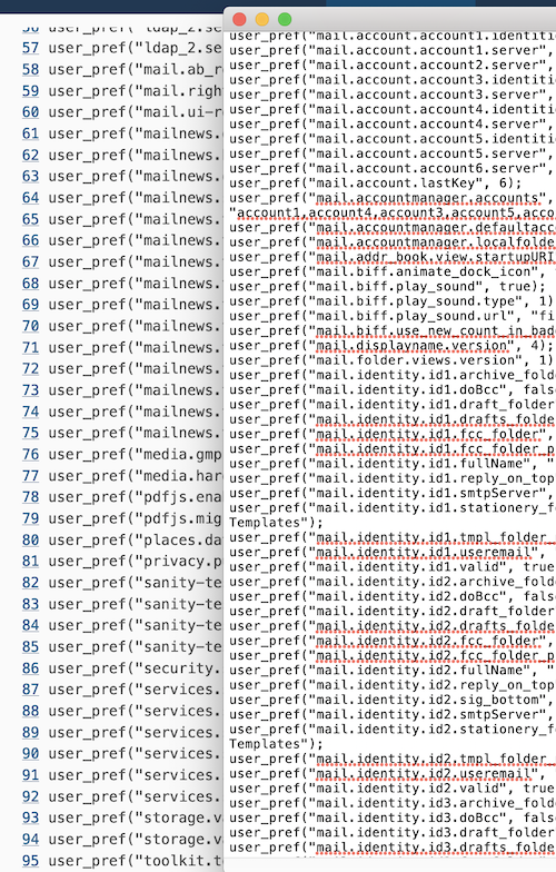 Was mich wundert, ist, daß der Ordner außer der normalen prefs.js noch 23 andere prefs-Dateien enthält, die alle fortlaufend von prefs-1. bis prefs-23.js benannt sind.