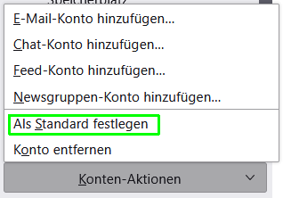 Soll ein anderes Konto als Standard deklariert werden, dann das Konto markieren und mit Konten-Aktionen (ganz unten)