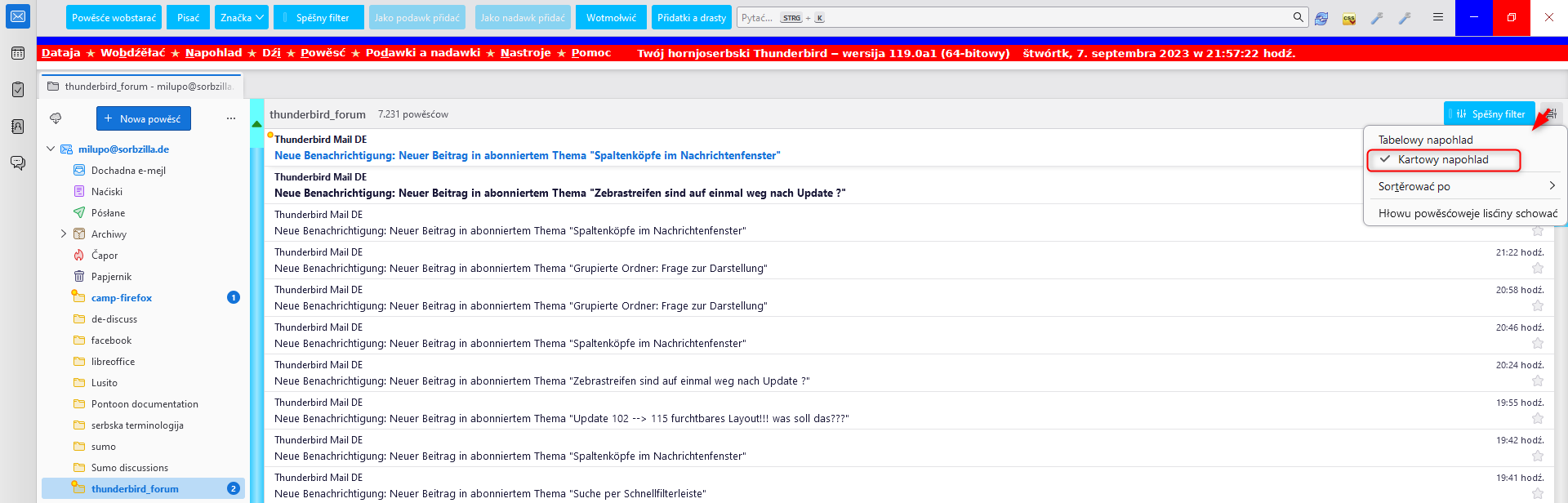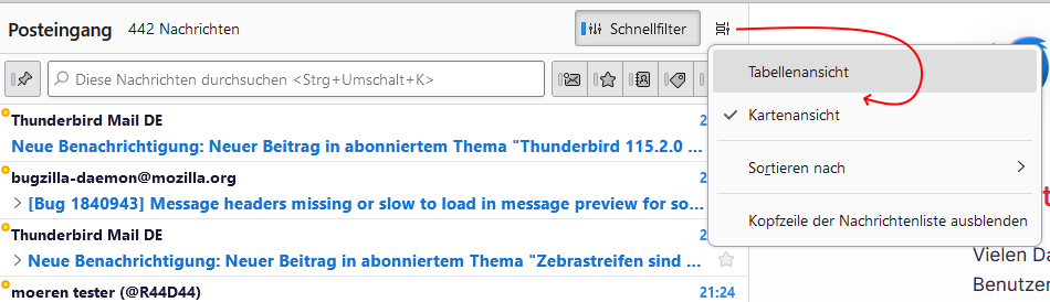Streng genommen müsste man ab 115 immer nachfragen, ob die klassische Mail-Liste oder die Kartenansicht gemeint ist. ![]()