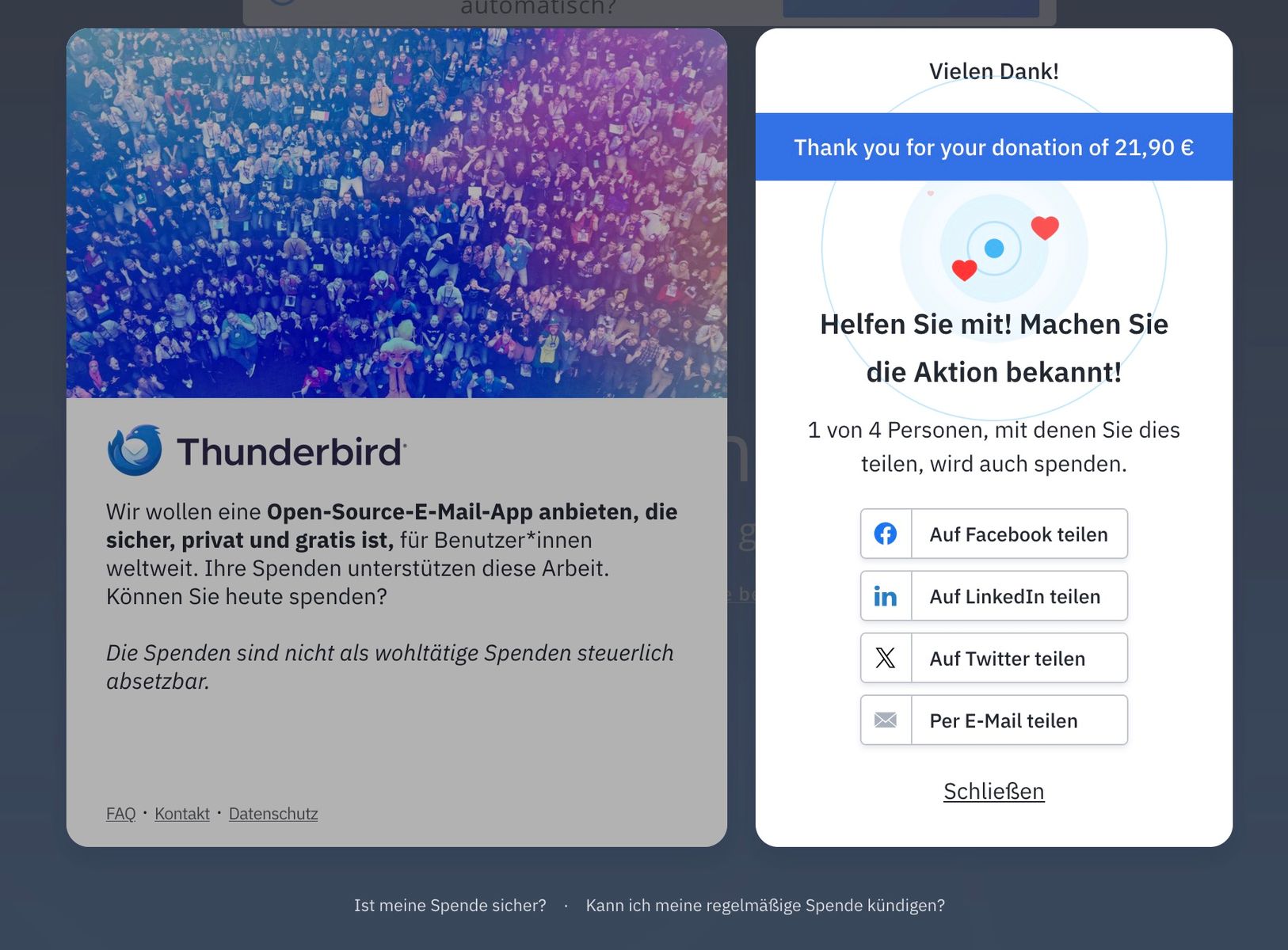 Die Suche nach E-Mails von einem Absender funktioniert klaglos. Wenn ich eines der E-Mails aufrufen will, bekomme ich nicht den Inhalt des ausgesuchten Mails, sondern eine Aufforderung zu spenden. Ich habe gespendet und eine Bestätigung erhalten, aber es hat sich nichts an meinem Problem (das ich gestern noch nicht hatte und auf meinem Laptop nicht habe) geändert.