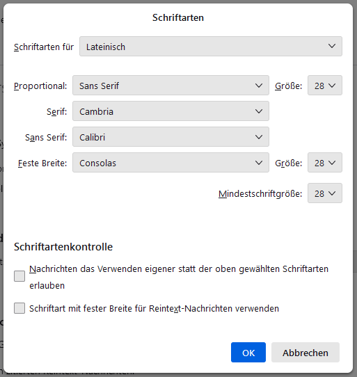 Gibt es irgendeine Möglichkeit (css oder Addon), dauerhaft die Darstellung im Verfassen-Fenster größer darzustellen als der Standard es macht?