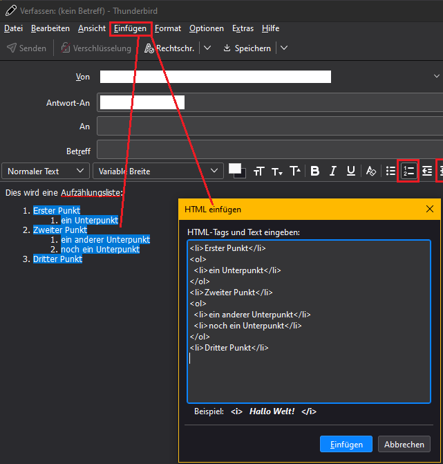 Ich habe das mit Einzug versucht, dann steht aber auch die Zahl mit beim Einzug.