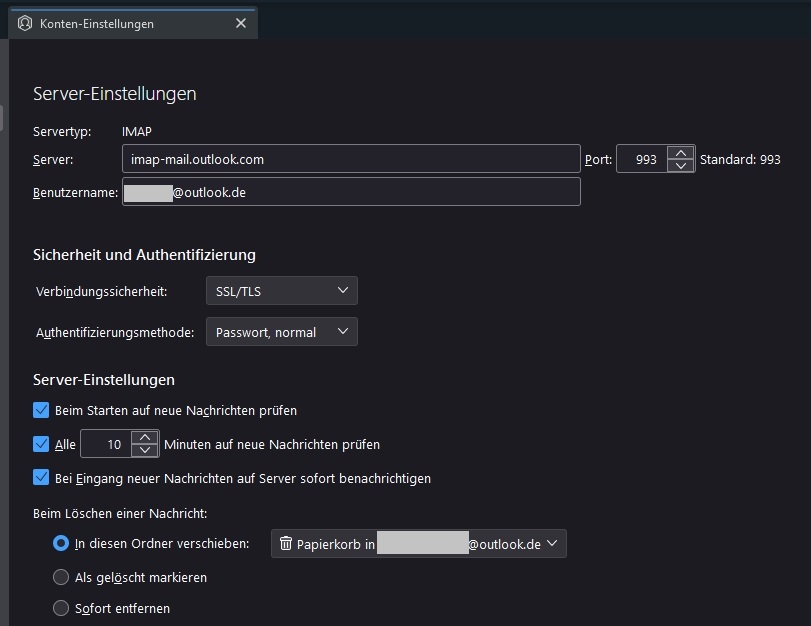 Server: outlook.office365.com (mit imap-mail.outlook.com versucht, bringt nchts)