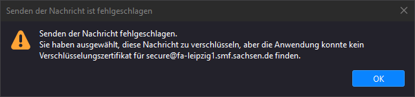 Ein Versenden der Nachricht schlägt entsprechend fehl.