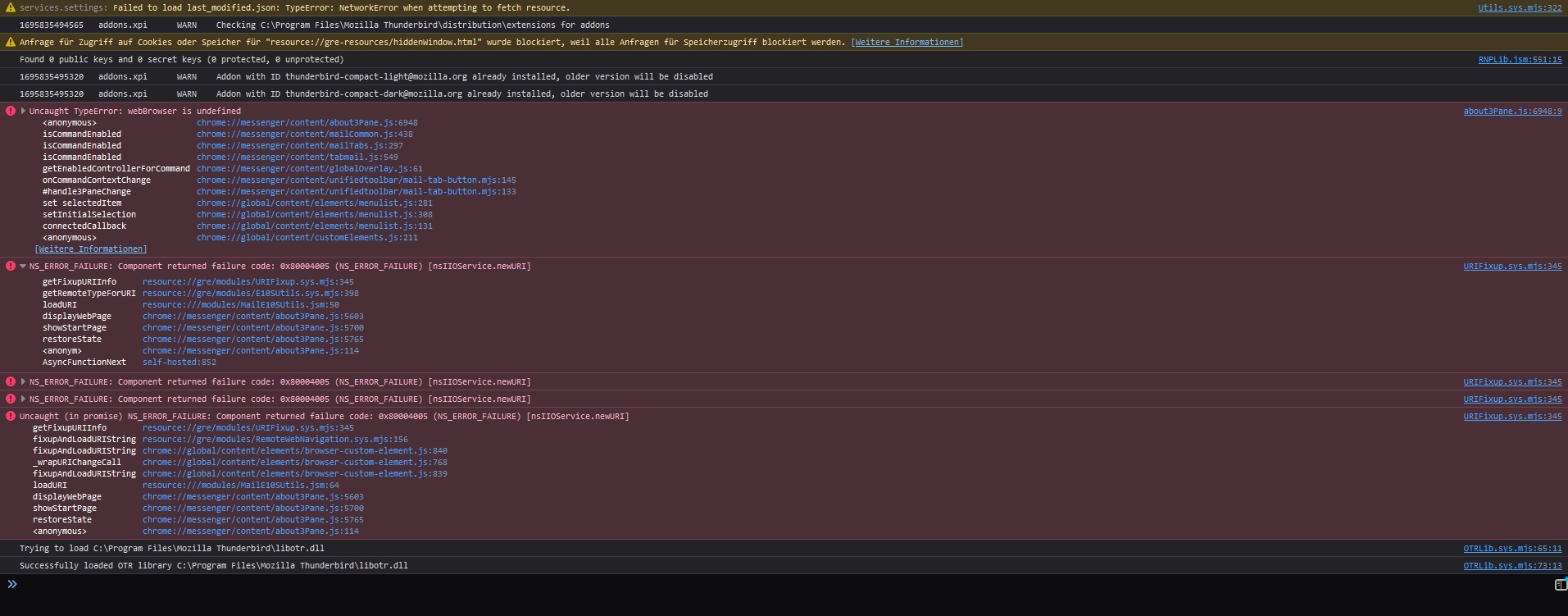 Anbei noch die Ausgabe der Fehlerkonsole.