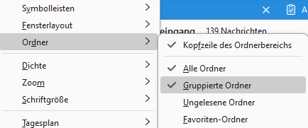 Ich sehe also alle bisher existierenden Ordner nur unterhalb / innerhalb des Baumes zum entsprechenden Konto und alle neuen Ordner nur unterhalb des Ordners "Posteingang" und dann jeweils unterhalb des entsprechenden Kontos.