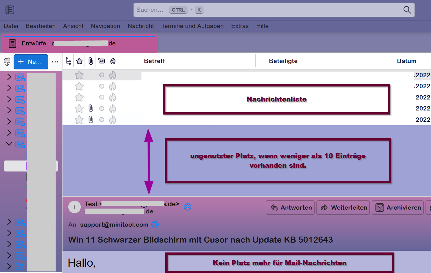 Bei den Ordnern Entwürfe und sonstigen sieht es so aus, wenn weniger als 10 Nachrichten in der Liste vorhanden sind.