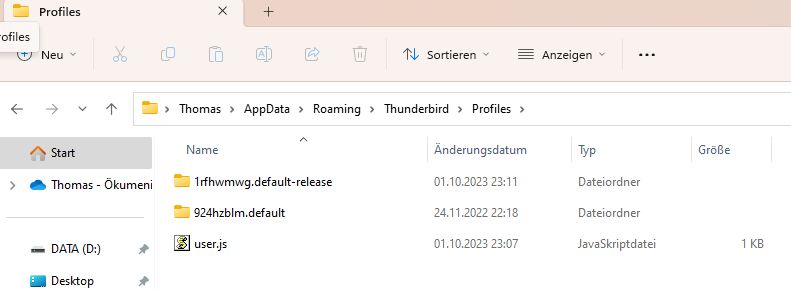 Der Weg zum aktiven Profilordner wie da im 1. Bild bei Deinem TB [tmdekeyboard]Ordner öffnen[/tmdekeyboard] klicken und dann TB beenden!