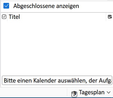 das ist einfach das Aufgaben-Fenster, in dem standardmäßig die aktuellen Aufgaben angezeigt werden. In der obersten Zeile kannst Du lediglich festlegen, dass auch abgeschlossene Aufgaben angezeigt werden. Aber ja, dieses Verhalten stört mich ebenso. Ich nutze zwar durchaus Aufgaben, dieses Fenster ist aber zu Lasten des Tagesplans viel zu hoch.