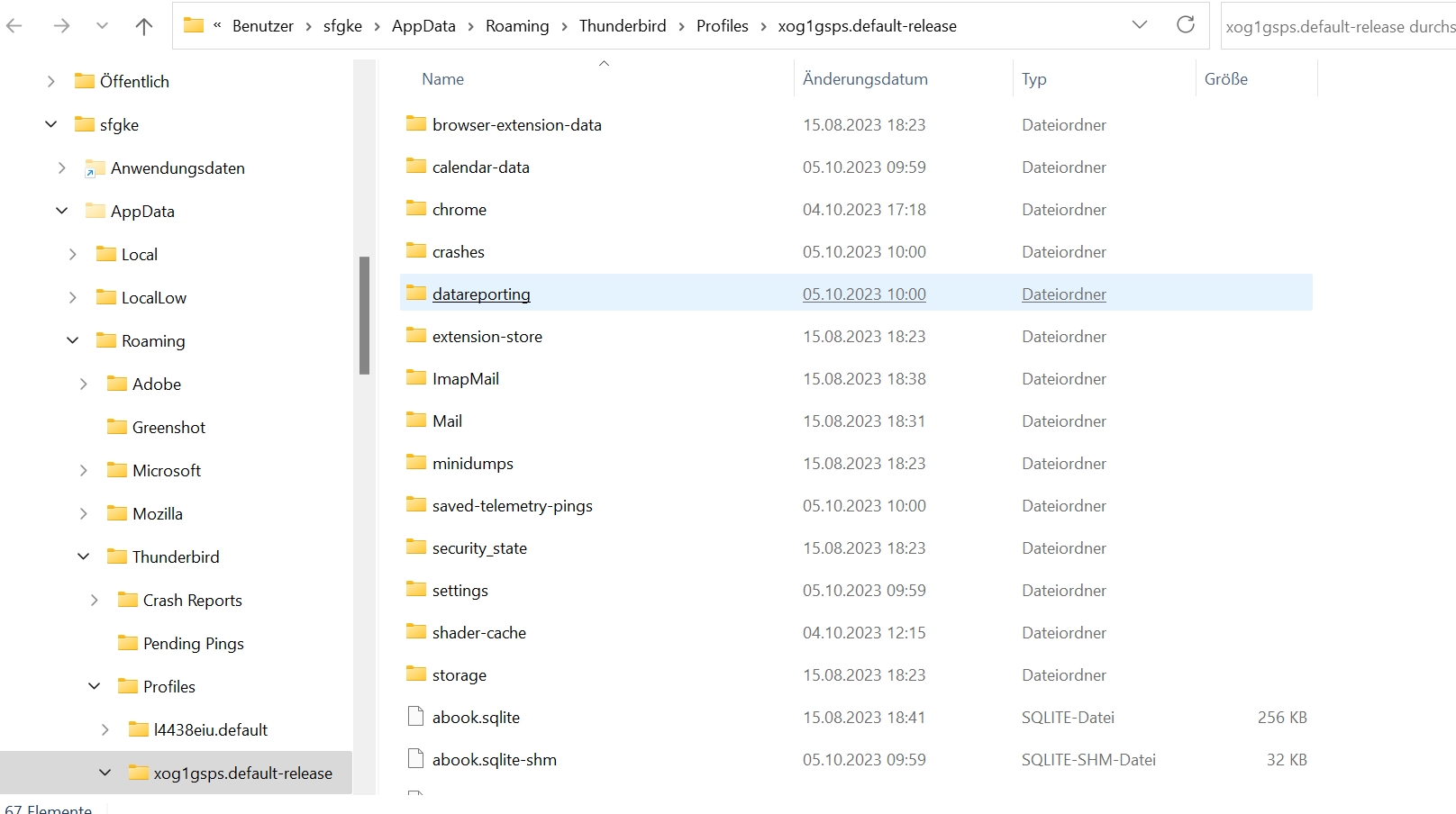 Ferner, nur um sicher zu gehe, dass das aktive Profil im Blick ist: via Hilfe > weitere Informationen zur Fehlerbehebung > Profilordner > Button 'Ordner öffnen' .. was wird Dir als Speicherort angezeigt?